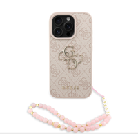Guess PU 4G Metal Logo Etui do iPhone 16 Pro Max Pink + smycz na nadgarstek