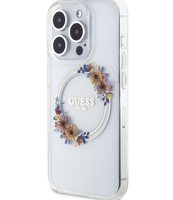 Guess PC/TPU Flowers Ring Glossy Logo MagSafe Case for iPhone 14 Pro Transparent